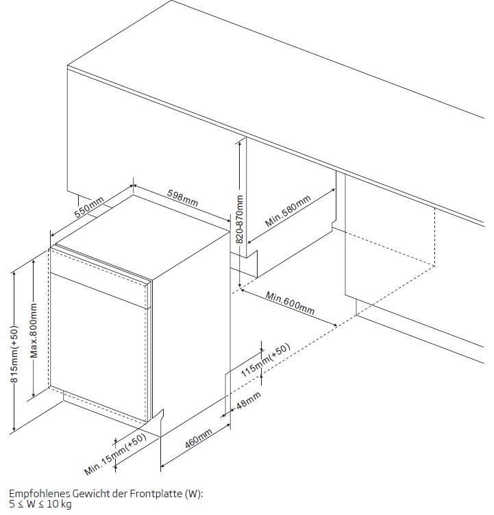 • Nische (HxBxT): 820-870 x 600 x min. 580 mm