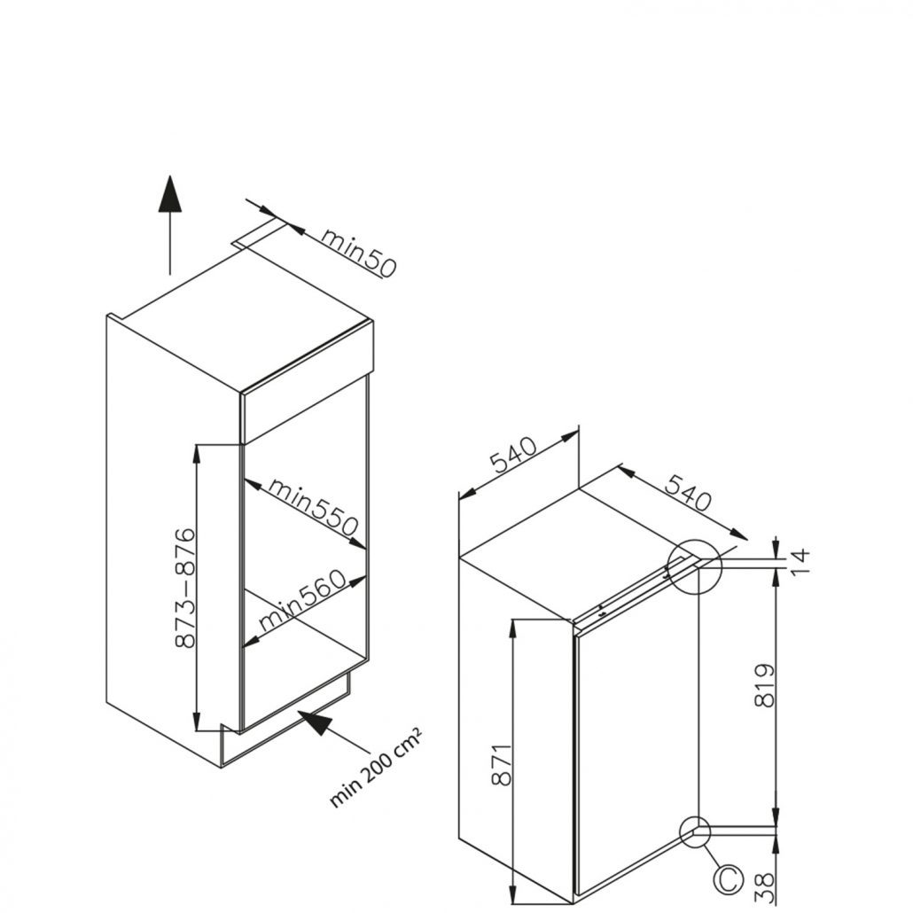 - Nischenmaß (HxBxT): 873 – 876 x 560 x 550 mm