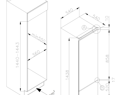 - Nische (HxBxT): 1440-1443 x 560 x 550 mm