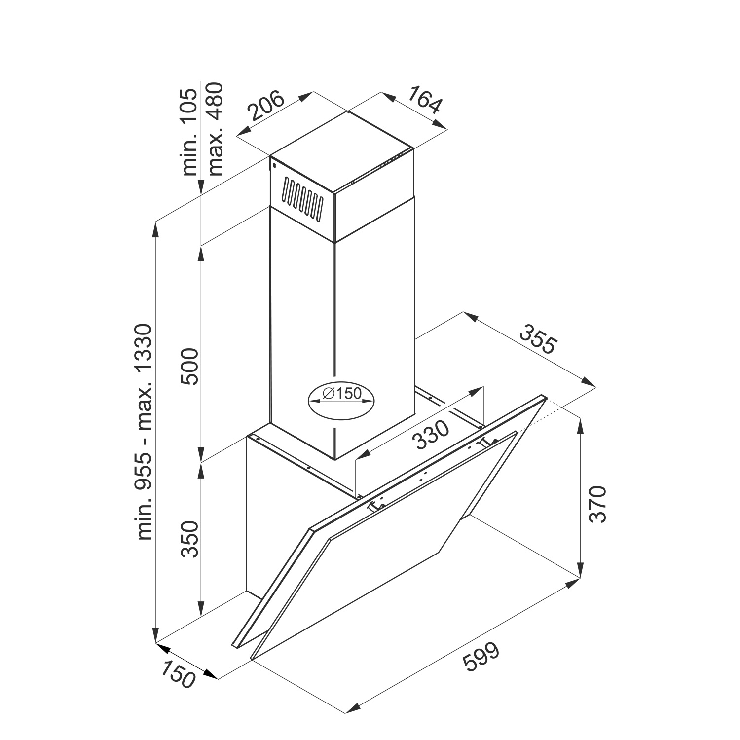 - Gerätemaß (HxBxT): 955,0-1330,0 x 599,0 x 355,0 mm