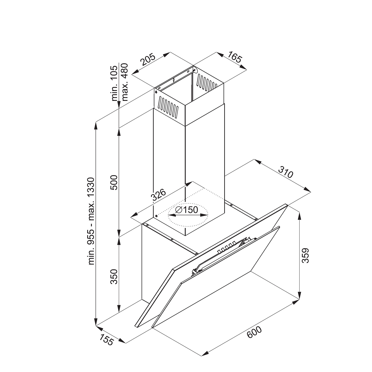 - Abluftstutzen: 150 mm Ø