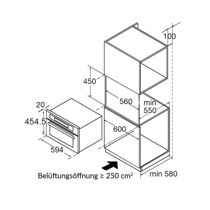- Nischenmaß (HxBxT): 450,0 x 560 x min. 550 mm